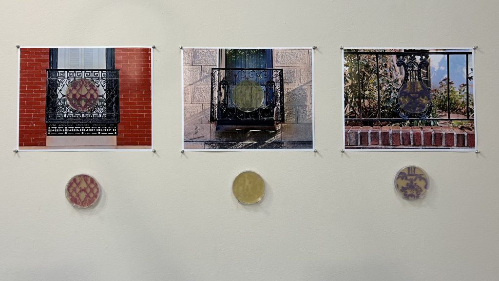 Modes of Protection (2025) refers to the various means of protecting ourselves and the creatures that we cultivate while also highlighting the beauty of the creatures we normally protect ourselves from and the forms of protection used. Using a RFP producing strand of E. Coli, I hand traced various window gates around the Bolton Hill area onto a clear agar plate.