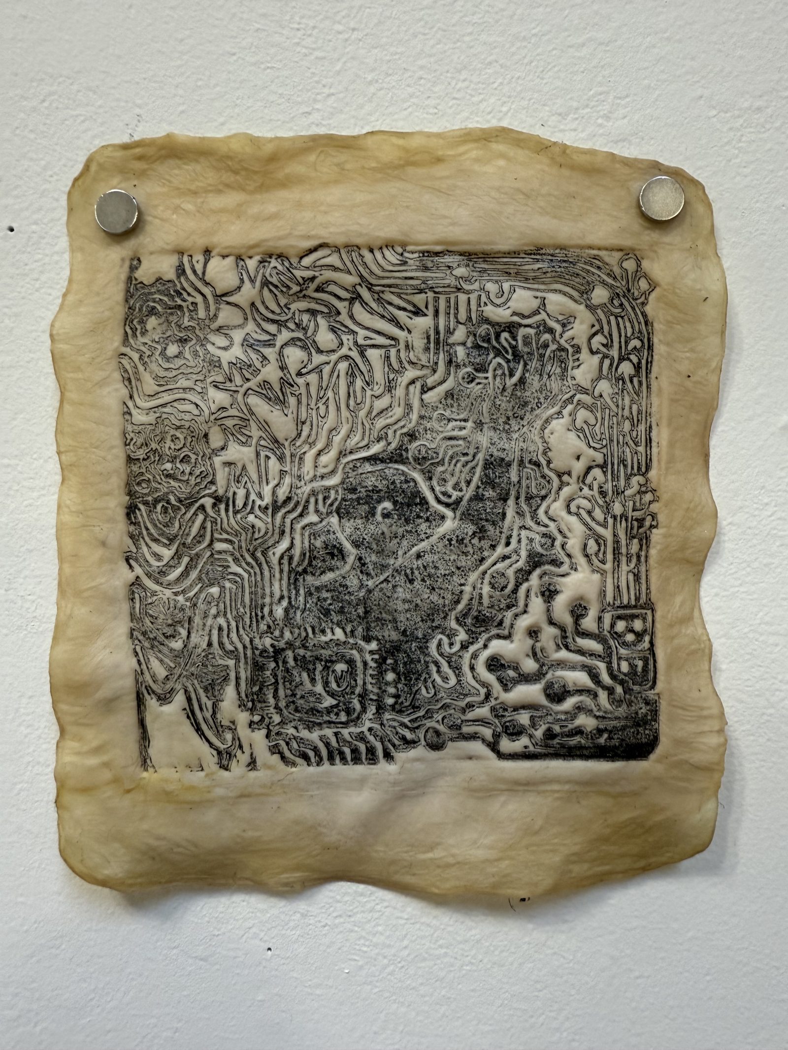 Glycerol soaked pellicle. Playing with how hydration of the material affects the image you laser cut onto it.