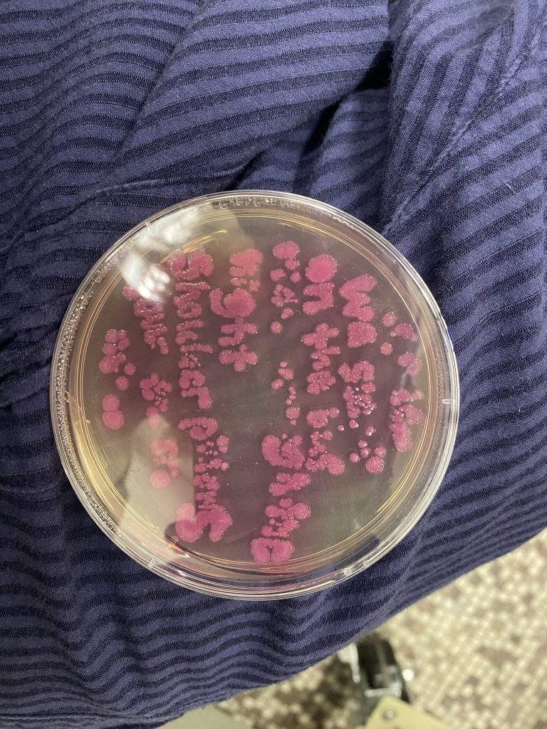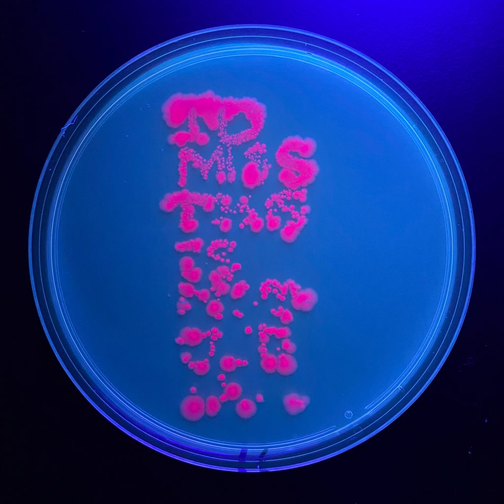 In my next attempt, I simply hand-drew the phrase with a cell-spreader loop, in RFP e.coli onto a clear plate from Amaya. This time, when placing the inoculated plate inside a larger petri-dish, we propped up the lid slightly with small rubber blocks around the perimeter of the larger dish, allowing some natural airflow to not trap condensation, but not so much as to ruin the moisture of the agar. This iteration of the timelapse was a success!! Additionally, in running both timelapses, I left my phone filming in the incubator with the plates from Saturday – Tuesday (truly a test of weaning my reliance on my devices).